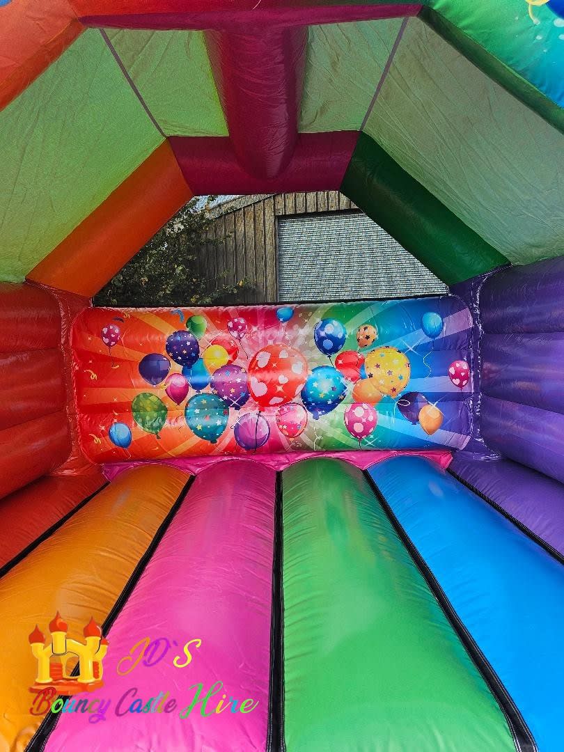 Bring the fizz and pop to your next Birthday Party with our Balloon Party Castle — a rainbow-packed bouncy castle that kids adore. Decked out in pink, green, blue, orange and red balloon-style décor, this cheerful castle creates an instant party atmosphere and makes every photo look like a confetti commercial. We deliver and set up across Exeter, so you can relax while the children bounce happily and safely.
